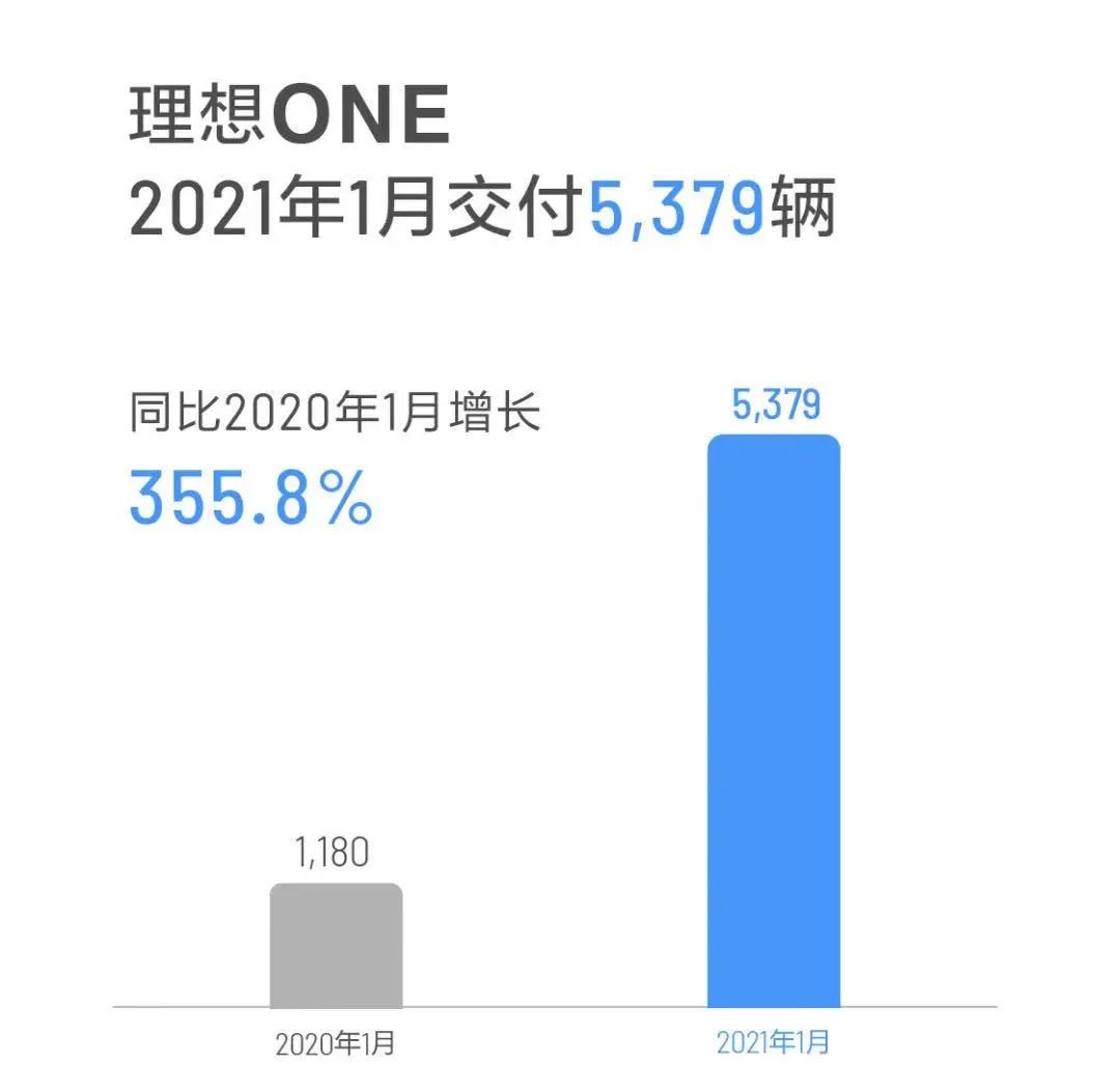 在新势力中,圈哥还是比较佩服理想汽车,原因很简单,单凭一款SUV车型的销量,就能顺利超越诸多对手,你这是要学习哈弗品牌的节奏啊。数据显示,2021年1月,理想汽车累计交付新车5379辆,同比增长达355.8%。当然,这样的增幅与前期销量基数低有很大的关系。