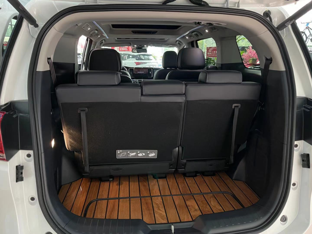 打开电动后备厢,传祺M8由于采用了是7座的布局,所以后备厢空间表现并不算特别出色,只能说是刚好能够满足家用。不过好在是第三排座椅可以进行4/6比例放倒,并且可以折叠,装载大件行李还是没有问题的。个人认为,如果第三排座椅底部可以设置一个滑轨,或许整体空间利用率会更高一点。