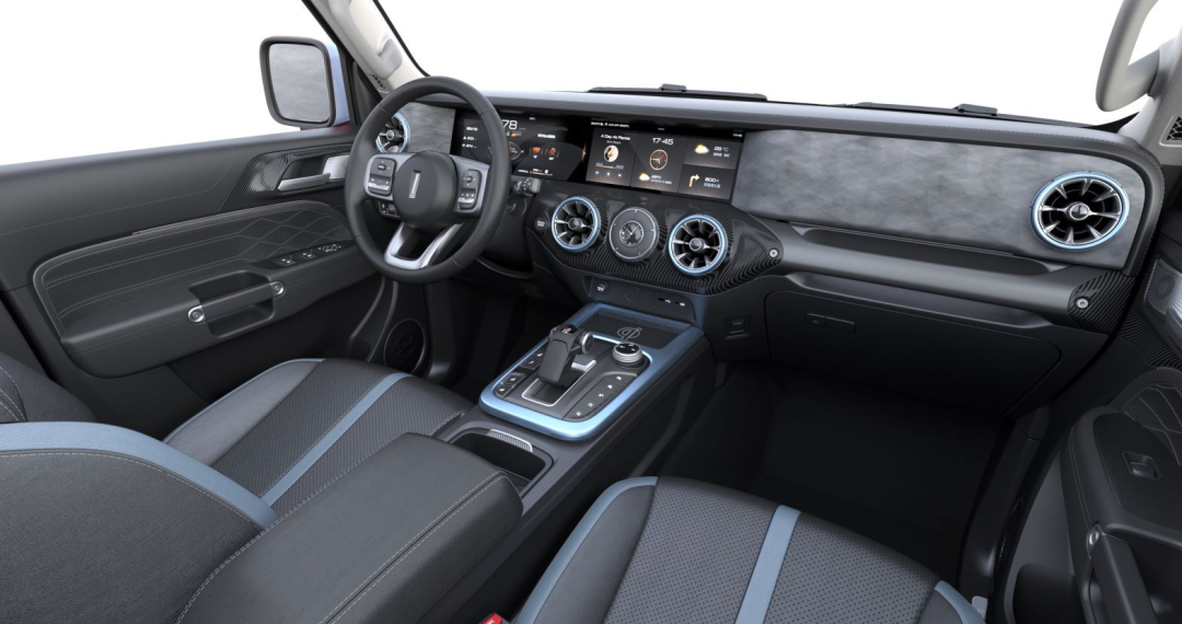 当然,不止外观设计,坦克300致敬莫奈限定版的内饰同样也采用了一系列的专属设计。最直观的是,内饰配色在纯黑基础上融入蓝色条纹设计,同时限量标识加持,让整车更加与众不同。门板与中控位置进行几何纹理点缀,看上去更加时尚精致。