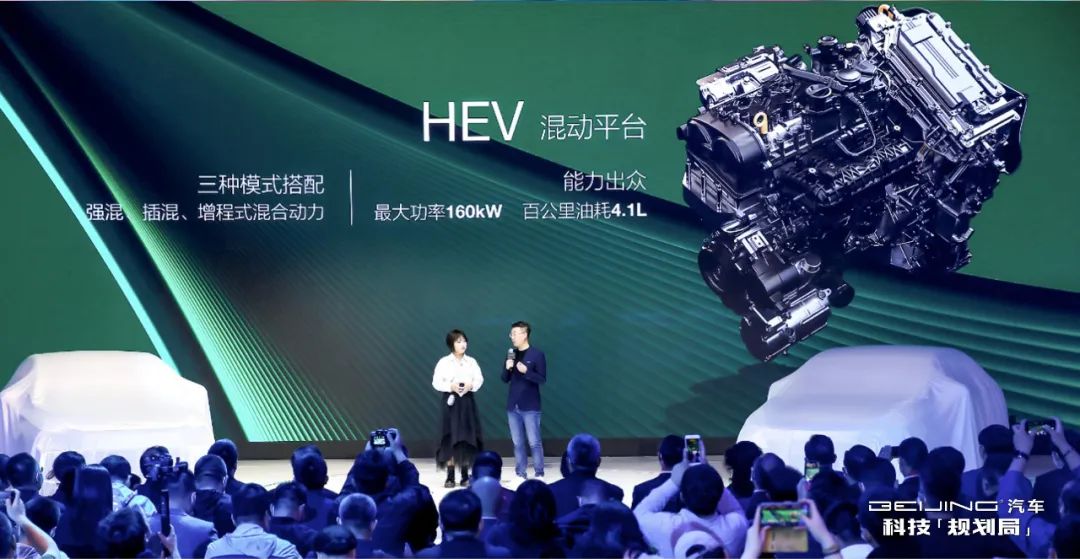 现阶段,有不少人其实向往纯电动产品超低的使用成本,但本身又更习惯于使用燃油车,那么HEV产品正是两者兼顾的优质选择,而BEIJING汽车致力于打造的HEV混合动力平台将适配强混、插混、增程式混合动力模式,可实现160kW的最大功率、实现35%的系统节能,拥有4.1L的百公里油耗,实现了经济性与动力性的双双升级。