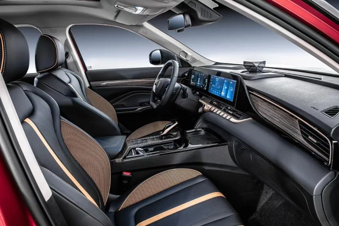 奔腾T55的内饰可设计以说非常大胆,全液晶仪表盘加中控触摸屏组成的双联屏设计,圈哥就不用多说了,科技感营造没有话说。双辐式多功能方向盘,以及全新的电子换挡机构,让人非常有驾驶欲望。而全新的双色座椅搭配,无疑让整个内饰更具高级感,这也是圈哥认为其设计大胆的原因之一。
