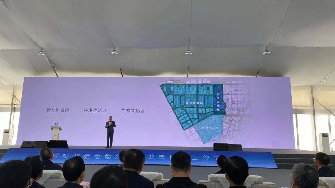 《车壹圈》现场了解到,新桥智能电动汽车产业园区定位世界级智能电动汽车产业集群,将开展整车、核心零部件、自动驾驶等创新性研发,打造具有全球竞争力、引领性的创新链;引入数百家关键配套企业,形成完整与高度聚集的产业链,且这种完整智能电动汽车产业链是特斯拉也没有做到的,蔚来汽车在新能源领域再次创造一个世界第一。