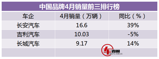 数据显示,长安系中国品牌汽车4月销售16.6万辆,同比劲增39.0%。值得一提的是,长安系中国品牌乘用车单月销量也突破了10.74万辆。这样来看,无论是中国品牌总量还是中国品牌乘用车销量,长安汽车都蝉联中国品牌销量第一名。