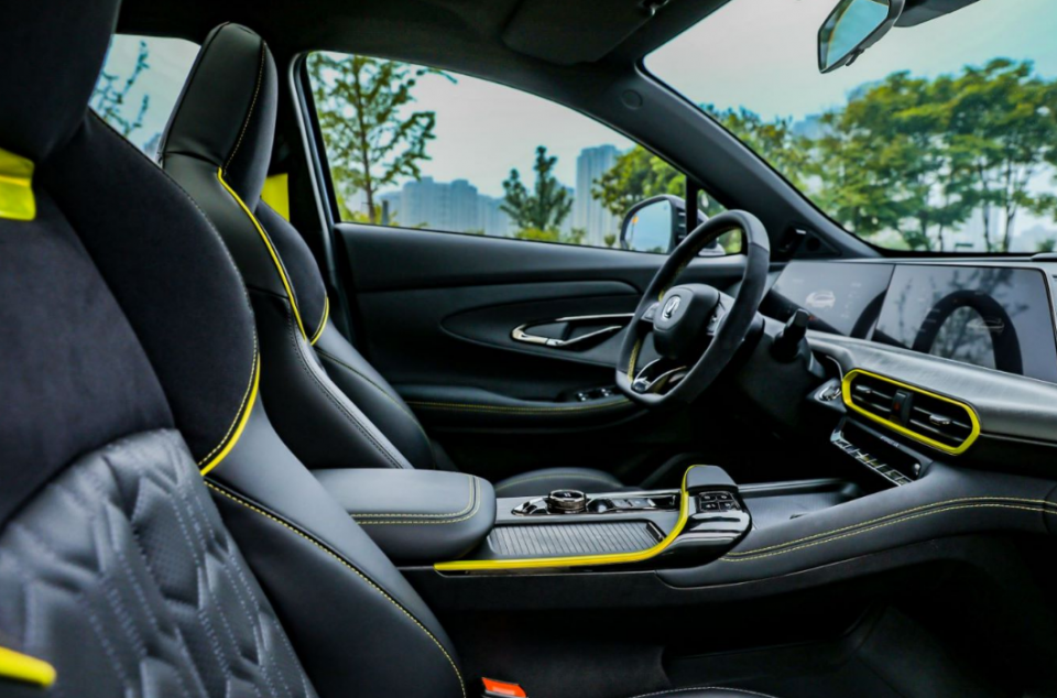 UNI-T运动版内饰采用了全新撞色搭配,给人带来了极强的视觉冲击力。三辐式方向盘采用了Alcantara材质,配合黄色缝线,触感非常不错;一体式座椅的使用,看上去更显高档。诸如空调出风口、换挡手柄等地方,也都采用了荧光绿饰条进行点缀。动力上,该车搭载了搭载蓝鲸NE1.5T+蓝鲸7挡湿式双离合这一动力组合,并新增了“弹射模式”,这对于年轻人来说,是非常实在的配置了。