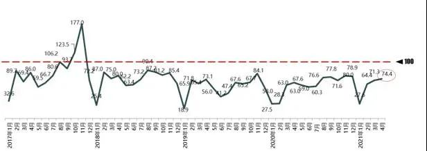数据显示,4月份,全国汽车消费指数为74.4,预计5月汽车销量继续回升,市场表现平稳。4月入店分指数为83.3,较上月有所上升。4月中下旬上海车展召开,新车集中上市,吸引消费者进店看车,叠加五一假期多地举行车展,预计5月份集客有所上升。