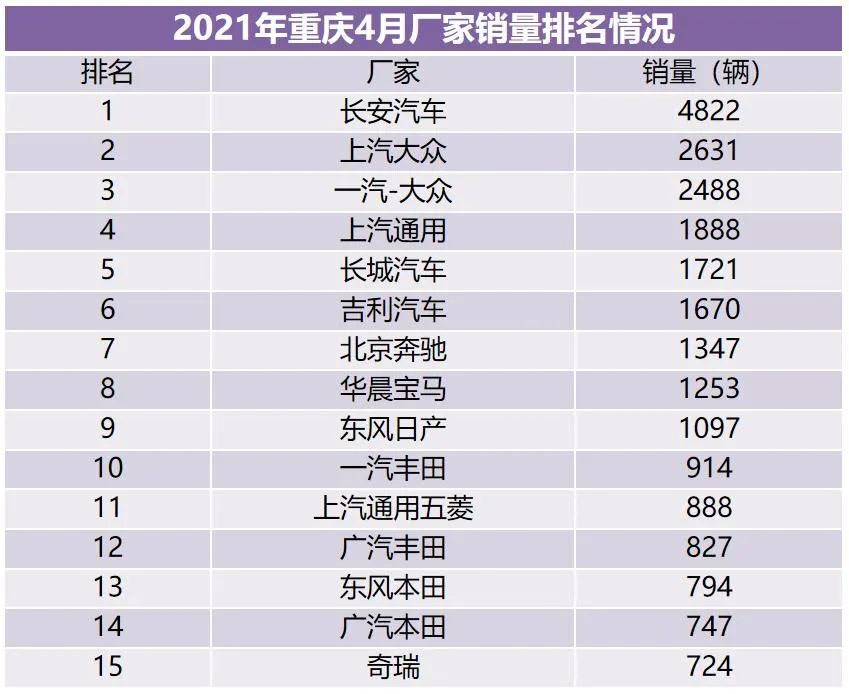 重庆市场厂家销量排名情况