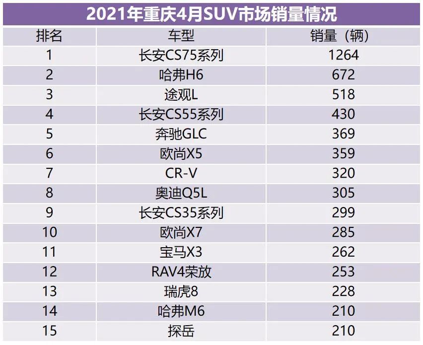 从4月SUV市场销量排名情况来看,自主SUV与合资车型基本上是“两分天下”。具体来看,长安CS75系列、哈弗H6、途观L依旧稳居榜单前三。长安CS55系列、长安欧尚X5、长安欧尚X7等长安系依旧稳定输出,继续发挥了本土作战的优势。值得一提的是,奔驰GLC、奥迪Q5L、宝马X3也都同时入围了榜单,且奔驰GLC排名继续大幅靠前,位居榜单第5位,不得不说,重庆市场的消费能力还真不赖。