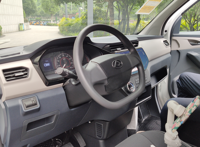 与其它竞品相比,新款EV30内饰设计更有质感。虽然中控采用硬塑料材质,但用料扎实并不单薄,同时多色饰板的搭配让新款EV30看起来像家用轿车,完全没有廉价的感觉。另外,新车还标配了遥控钥匙、主/副驾驶座靠背调节、车载蓝牙电话、USB充电接口、大灯高度可调、前排电动车窗、手动空调等超多实用功能,相比部分竞品还在使用的手摇车窗、机械解锁等配置来说,新款EV30显得颇为厚道。