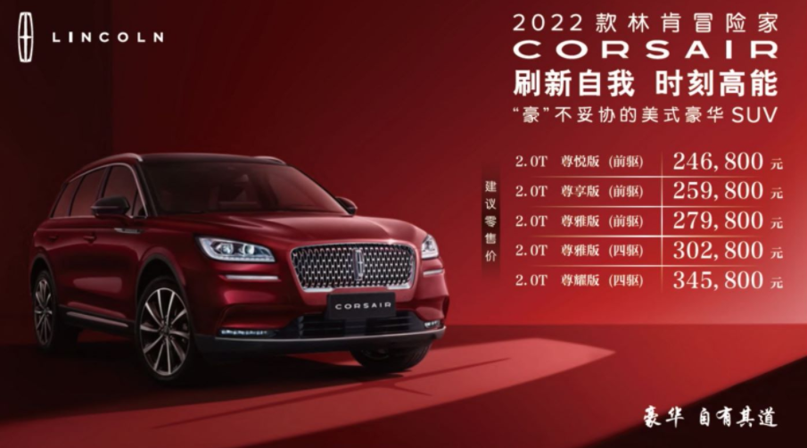 今日(6月12日),在2021重庆车展的开幕日上,2022款林肯冒险家Corsair正式迎来上市。新车共推出了5款车型,其售价区间为24.68-34.58万元。看到这个价格大家有没有很熟悉,完全是和老款保持了一致,但是作为新款车型,相比老款各方面肯定是有所提升的。那这岂不就是花同样的钱,买更好的东西了吗?谁不心动呢?