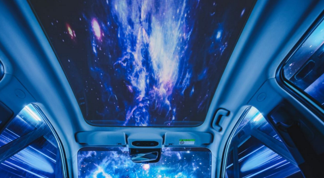 此外,内饰最大的亮点当属这款1.9平米的天幕玻璃了,其搭载有全球首发的第三代柔性电致变色技术,领先波音787的变色舷窗,并且还配有双银镀膜加low-E隔热玻璃,可隔绝99.9%紫外线。说人话就是,看着敞亮,大太阳也晒不着,还能控制变色。与家人出游,随时抬头便能仰望星空,想来也是一种极致温馨的画面。