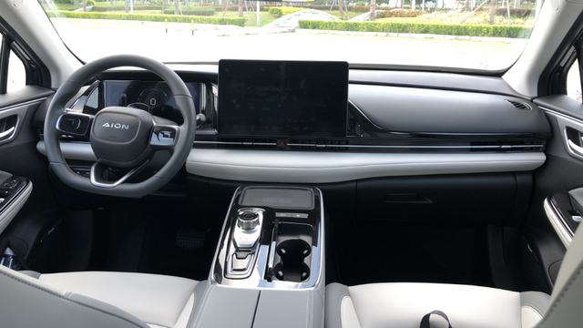 新车的轴距与现款AION S并无区别,因此车内空间也没有变化,前排保持我185cm,95kg的坐姿,后排空间足够宽敞。虽然其定位紧凑级,但这样的表现已经堪比中型轿车了。而且后排的座椅柔软度会高于前排,静态乘坐比前排更加舒适。