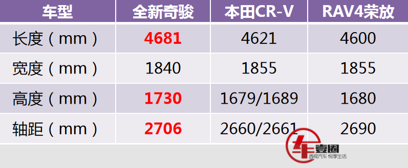 再看全新奇骏,19.99万元的预售价正好处在本田CR-V和RAV4荣放主销车型价格区间内,并不算高。我们再看看全新奇骏的尺寸、轴距方面。全新奇骏超过2.7米,高于同级对手,实际体验下来其后排空间非常宽敞,座椅舒适度也有优势。