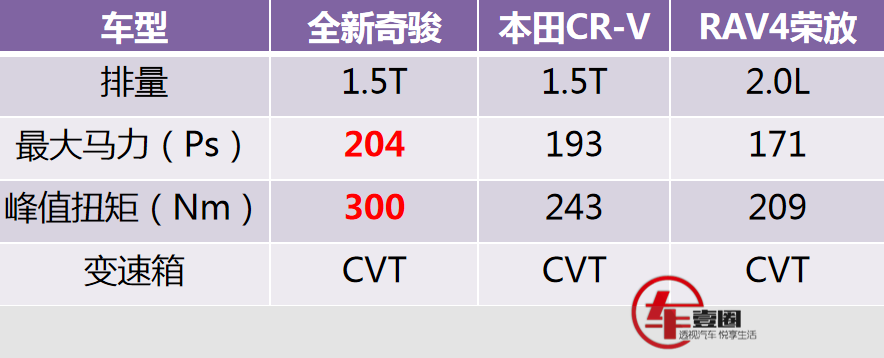 动力方面,全新奇骏搭载的1.5T VC-TURBO引擎拥有204马力/300牛·米的输出,相比RAV4荣放优势就很明显了。