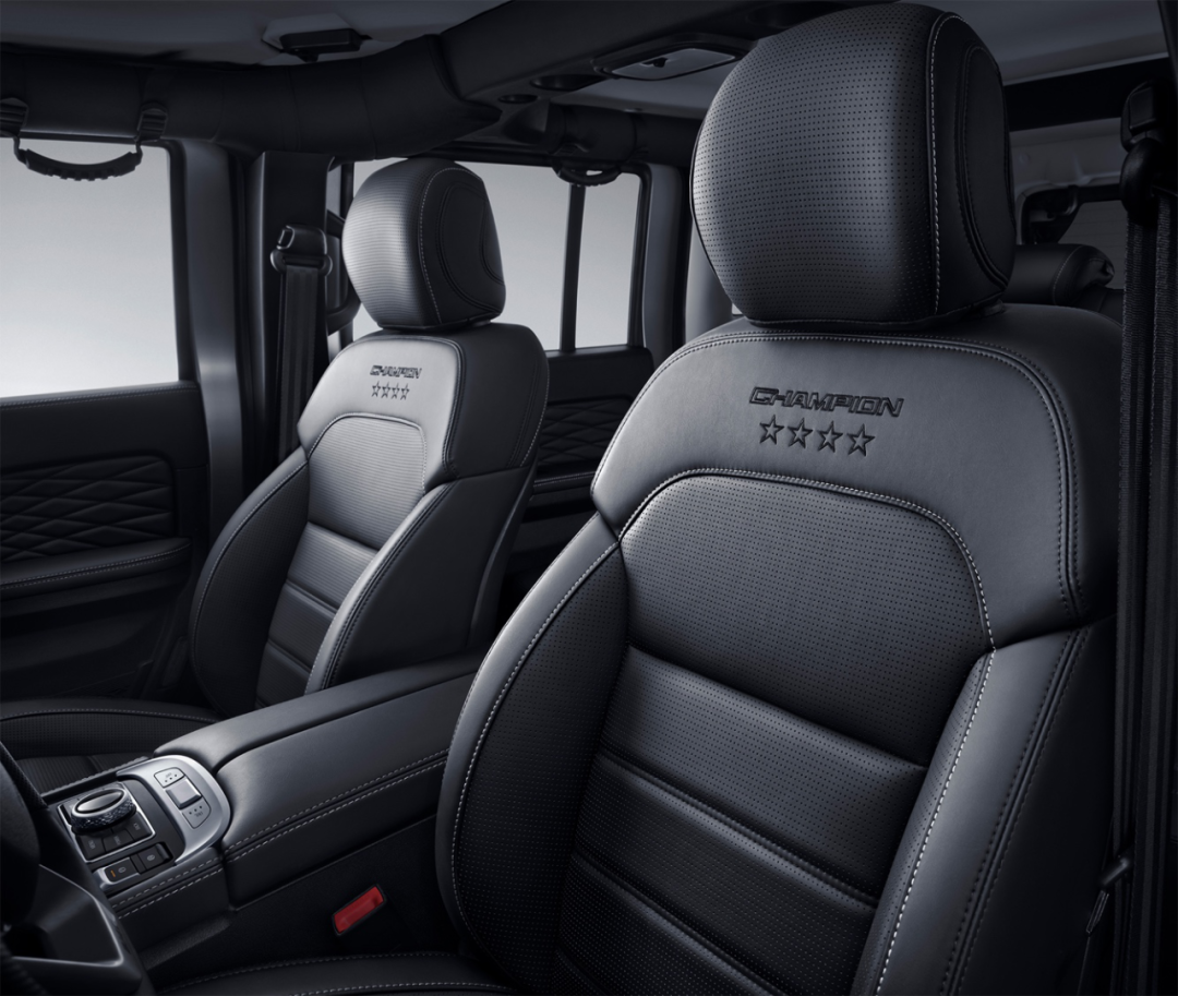 首先这款车的外观就注定它绝非一款普通越野车。整车配备的全新暴风灰专属哑光漆将硬朗的车身线条凸显得更有质感,同时该车还有专属拉花、冠军徽标等身份标识,个性和独特绝对是越野爱好者的心头好。在车内,屏幕上有环塔专属主题、座椅上还有专属的刺绣,可以说每一处都在彰显着它的冠军身份。