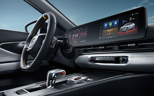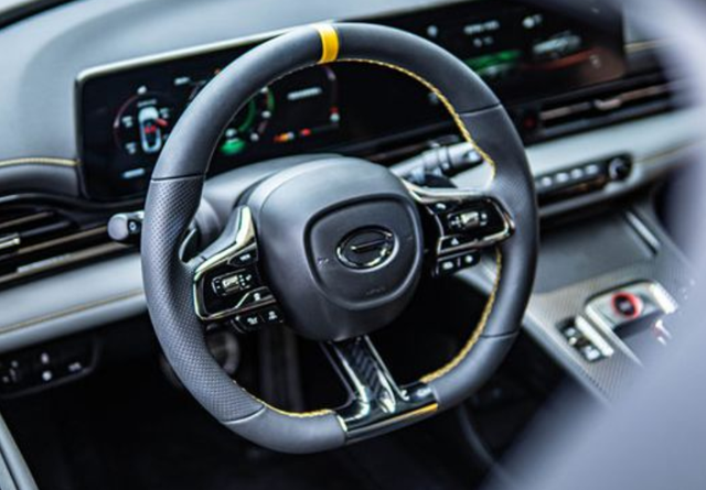 影豹的车内最具运动感的部件当属方向盘了,12点方向的小标记我们在GS4 PLUS上已经见过,无形中给了我们指向性精准的心理暗示,不错的小设计。较小的尺寸和平底的设计运动感十足,但如果气囊盖设计得再小点,整体比例就更舒服了。