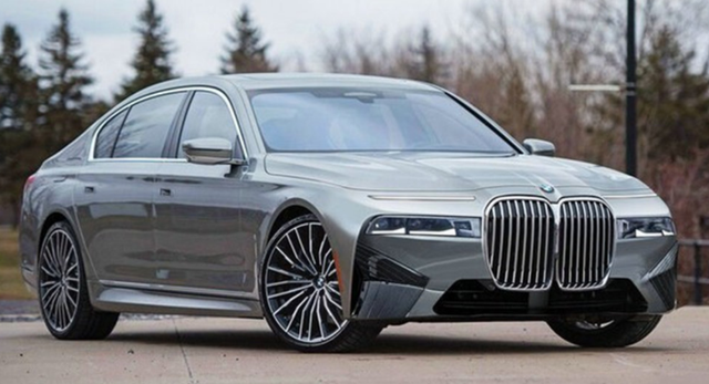车侧可以看到宝马标志性的短前悬长后悬的设计,腰线的位置很高,目测超过了车高的一半,大尺寸的轮拱和轮毂使整车侧身比例格外协调,厚重的车身赋予了整车安静沉稳的气质,颇有几分劳斯莱斯的味道。