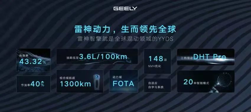 最引人瞩目的无疑是吉利全新的动力科技品牌——雷神动力,它包含了雷神智擎Hi·X混动系统、高效变速器、高效引擎以及全新电驱装置“E驱”在内的多项全球领先动力技术。