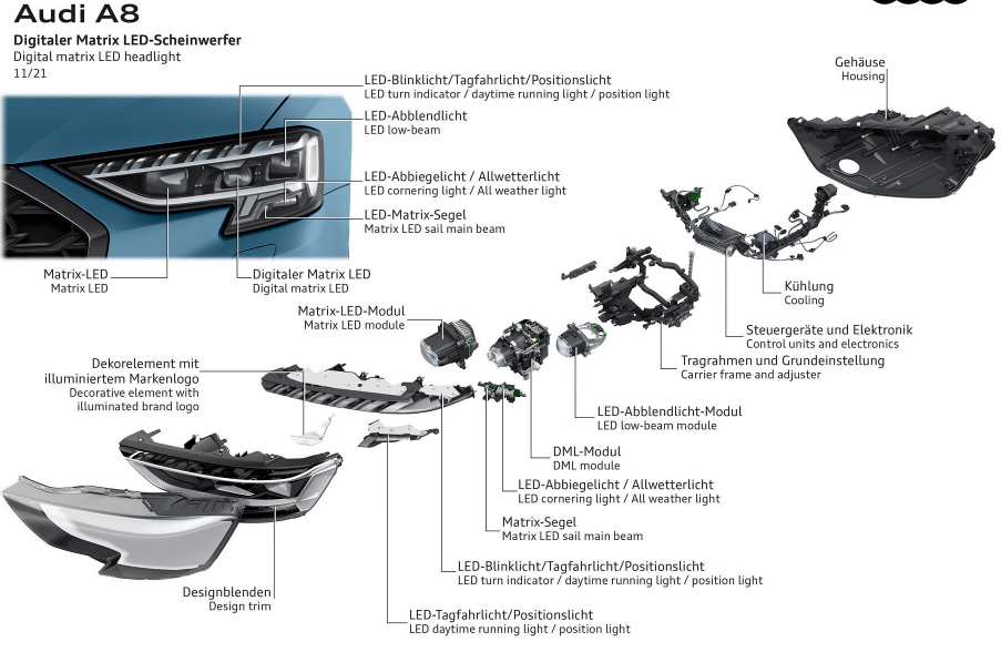 在为中国定制奥迪A8L Horch创始人版发布几天后,奥迪又紧接着在海外发布了改款后的A8家族最新车型。新款A8将持续服役到2024年,直到其全电动继任车型的到来。新款奥迪A8带来了颇具科技感和运动感的升级,并首次增加的S-Line套件,灯组的科技化升级这种“保留项目”自然也不会缺席,让我们先睹为快吧。