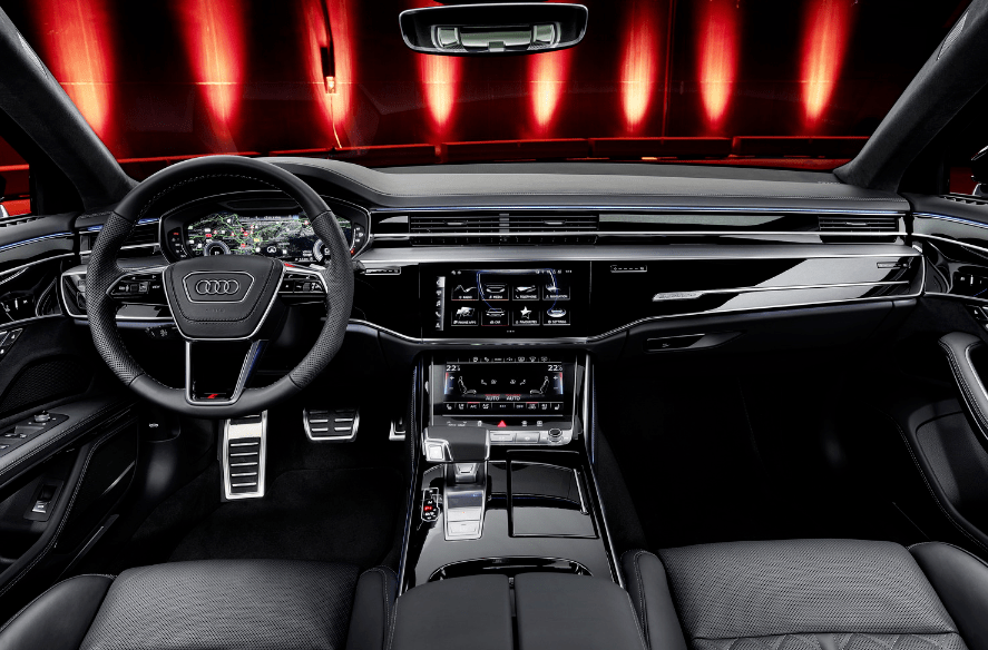 装备S-Line套件的车型则在A8的基础上更加运动,五幅式轮毂简洁有力,熏黑的前格栅与前唇颇具性能车的观感,乍一看上去似乎就是一台S8,因为他们的区别主要被隐藏在了发动机舱内。目前发布的车型将搭载3.0T和4.0T 发动机,3.0T分高低功率,分别输出286马力/340马力,4.0T则能输出460马力,而S8上搭载的高功率4.0T的输出更是来到了夸张的571马力,零百加速也仅需3.8秒。