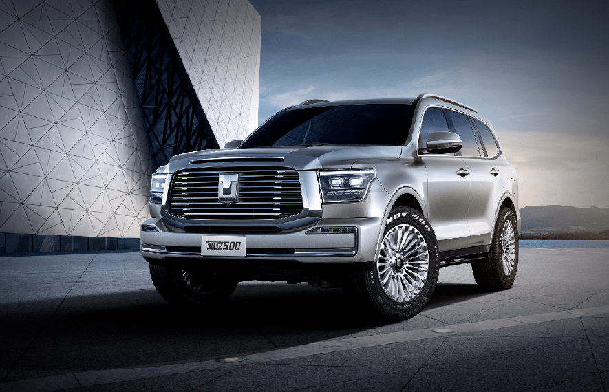 坦克500共推出运动型和豪华型两种车型,均采用了非常明显的硬派外形设计,在非承载式车的加持下,新车显得更加高大威猛。大尺寸的中网配合造型精致且尺寸同样巨大的头灯,形成了极具力量感和豪华感的前脸。平直腰线的车顶线条是车身轮廓显得格外霸气,也能很好的兼顾车内空间。