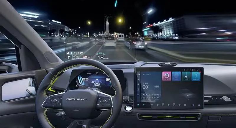 而更值得称奇的是北京汽车 魔方还能够借助60英寸超大画面的AR-HUD,以前风挡作为显示屏,将导航、ADAS、仪表等数字化信息,与真实的交通路况进行完美融合。并且这个AR-HUD还支持手机投屏,看电影啥的,说是你的私人影院也不过分。简直像是身处科幻电影当中的主角座驾里。