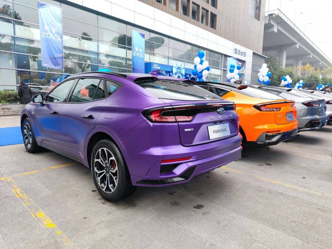圈哥早早来到了活动现场,发现主办方已经准备的相当充分了,十多台崭新的福特EVOS已经整整齐齐停在了院外。它们颜色、配置都各有不同,但有一点是相通的,那就是这帅气的大溜背。整齐列队带来的视觉冲击力着实比单车强了很多,中国人办事讲究一个体面,这样的场面可不是一般的交车仪式能有的排面。