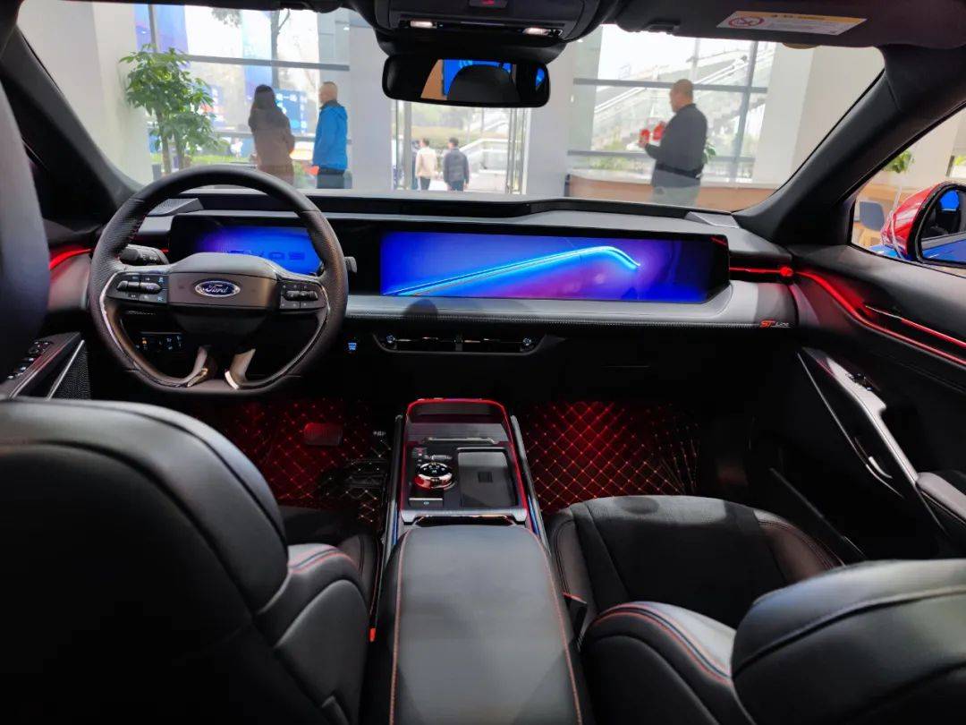 福特EVOS的内饰颠覆程度丝毫不输外形,1.1米27英寸的4K巨幕视觉冲击力极强,即使比起造车新势力们也毫不逊色,清晰的画质和反应速度也给人留下极强的好感。运动化三幅式方向盘和车内精致的氛围灯赋予了福特车型久违的精致观感,难怪车主们进入车内都是笑容满溢。