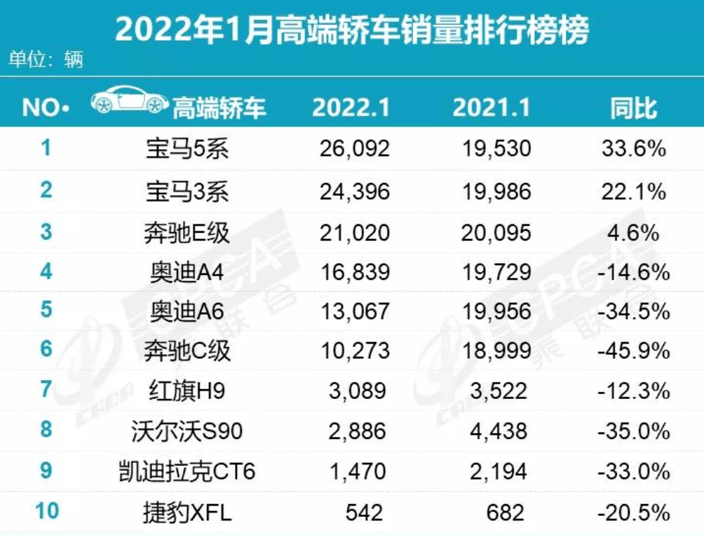 2月15日,乘联会公布了2022年1月销量数据,根据数据显示,我国在2022年1月狭义乘用车零售量达到207.9万辆,同比下降5%,环比下降1.3%,整体依然呈现下滑态势。不过在高端车市场,虽然整体也在下滑,但以宝马为首的豪华品牌产品依然表现出了强劲的增长,理想和特斯拉两大新能源品牌也有大幅增长,呈现出很强的虹吸效应。