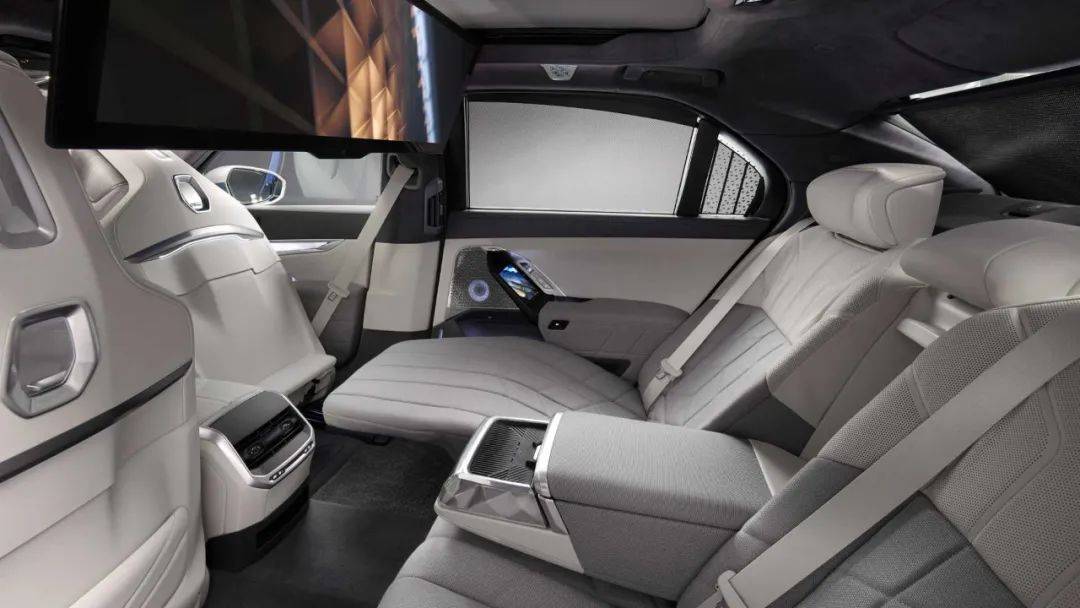 至于尊贵的后排座椅,除了本身的材质用料必须顶级以外,一键躺平也是这个级别的产品应该具备的功能,毕竟这是车主最常用的位置。但是宝马i7的后排座椅用上了宝马有史以来最宽大的座椅,并且支持42.5度的调节角度,以便不同体型的用户找到彻底放松的坐姿。