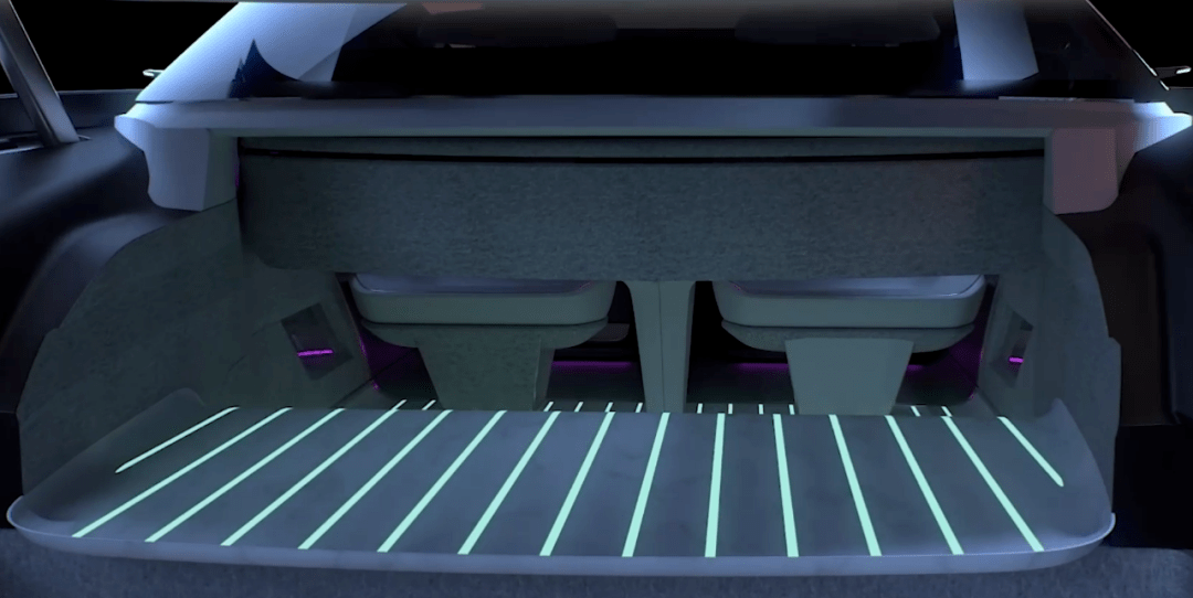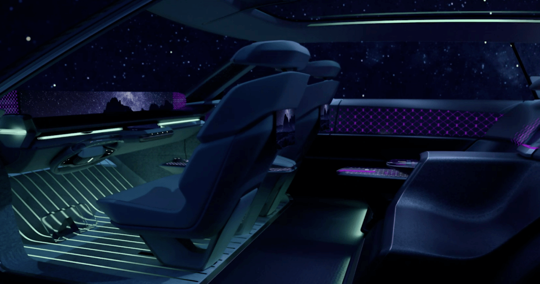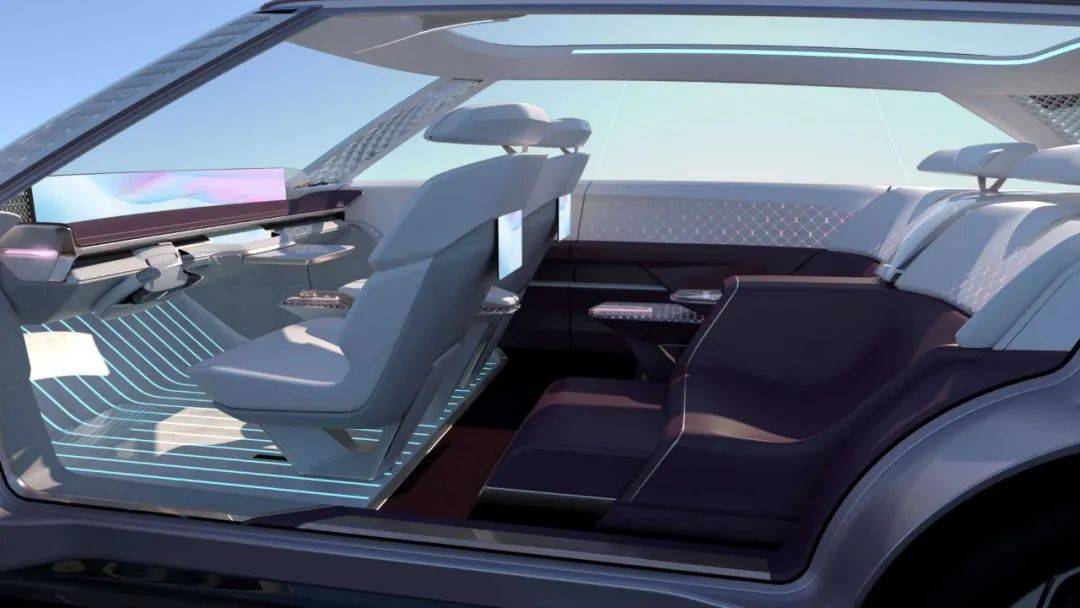 因为概念车采用纯电理念打造,电池组被完全放置在底盘上,因此车内空间得到了颠覆性的释放。前备箱甚至能与主驾驶位直接连通,以后主驾驶也可以在车辆行驶过程中拿取物品了。当然这也侧面说明了一点,最终量产版的车型应该是以支持L3级以上自动驾驶标准而设计的。