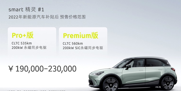 4月25日,smart精灵#1迎来了正式预售,新车共推出Pro+和Premium两款车型,补贴后预售价区间为19-23万元,作为奔驰和吉利联手打造的首款车型,smart精灵#1从曝光之日起就备受关注,属于奔驰和吉利寄予厚望的走量车型。