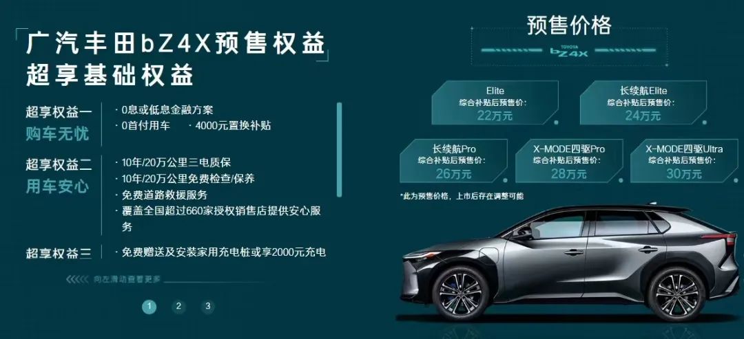 随着汽车市场略显颓势,新能源车成了市场新的增长点,各大厂商也是纷纷加码,加快了迈向电气化的速度,其中就包括老牌强企——广汽丰田。日前,《车壹圈》从官方获悉,广汽丰田bZ4X已经开启预售,新车预售价区间为22-30万元。