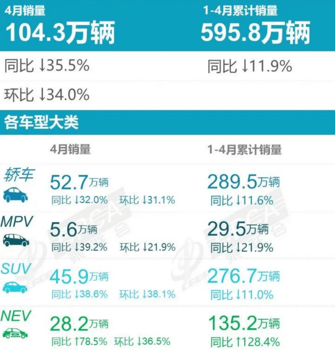 《车壹圈》观点:4月份高端车销量可以说非常惨淡,即使其中有部分品牌或车型表现相对亮眼,但依然无法掩盖大环境的疲软。令人担忧的是,这种情况在5月份也并未有好转的迹象,这表明中国汽车行业正受到多因素造成的巨大冲击。但相信5月份销量相比4月应该会迎来小幅的环比提升,如果想要保全年增长率的话,可能还需要部分政策支持才行。