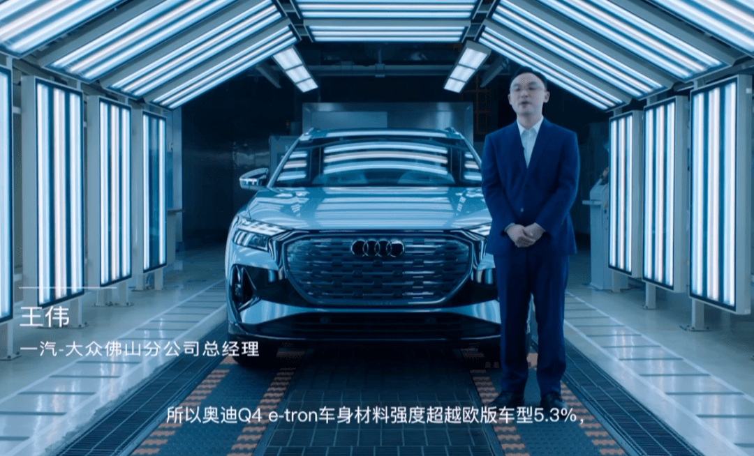 并且国产的奥迪Q4 e-tron因为工艺上的提升,使用了2000兆帕高强度钢,车身材料强度甚至超过欧版车型5.3%,因为欧洲工厂只能做到1900兆帕,而更高的刚性意味着更高的操控极限和安全性,也展示出了中国工厂的技术自信。