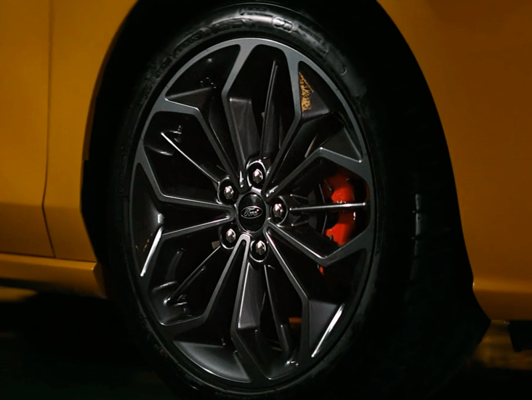 除了车头,新车的车侧和车尾也有许多不错的细节。首先是配色,ST-Line车型整个车身除了漆面底色外,所有覆盖件例如车窗框、后视镜等都采用了黑色涂装,很酷。轮毂更是采用了碳黑色漆面,配合红色卡钳,运动感爆棚。