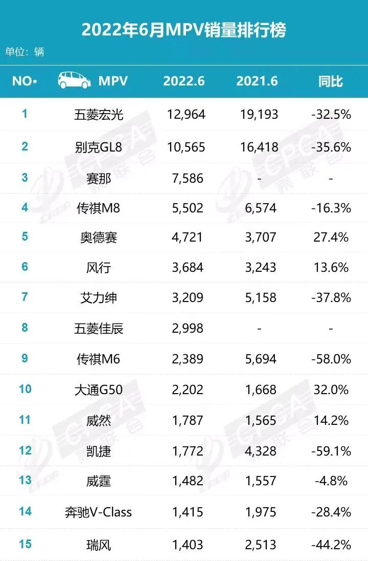 日前,乘联会公布了国内汽车市场最新零售销量数据,在6月国内狭义乘用车销量达194.4万辆,同比增长22.7%,环比增长43.5%。看来在购置税减免以及一系列优惠活动的刺激下,车市整体销量回暖明显。然而在销量回暖的大背景,圈哥注意到MPV市场依然没能免受销量下滑之苦,同比下降13.5%。接下来,就跟随《车壹圈》一起看看本月MPV车型具体销量如何吧!