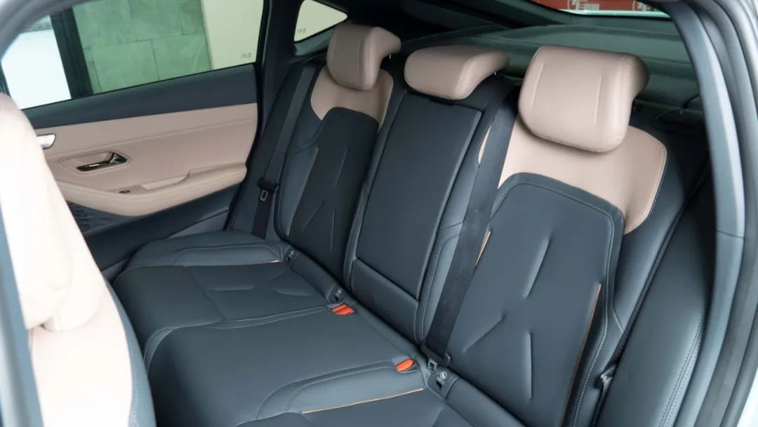 而从实际体验感受来看,在前排调整到合适的位置后,身高1.75米的圈哥坐在后排,腿部空间超3拳,头部空间也有4指左右。实话说,这样的后排表现有点超预期,值得点赞。同时,后排座椅的填充物也非常柔软,皮质质感也比较舒服,乘坐舒适性得到进一步保障。