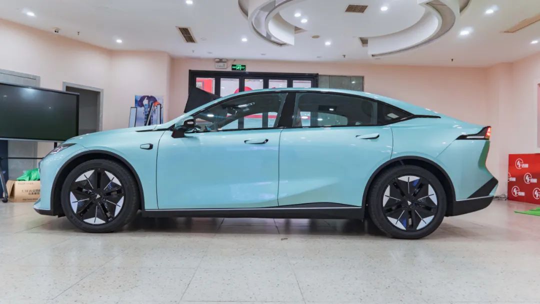 来到车身侧面,有几个点值得一说:一是电动隐藏式门把手,降低风阻的同时,带来一定的仪式感。