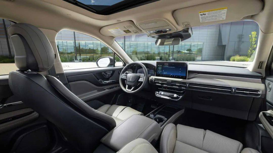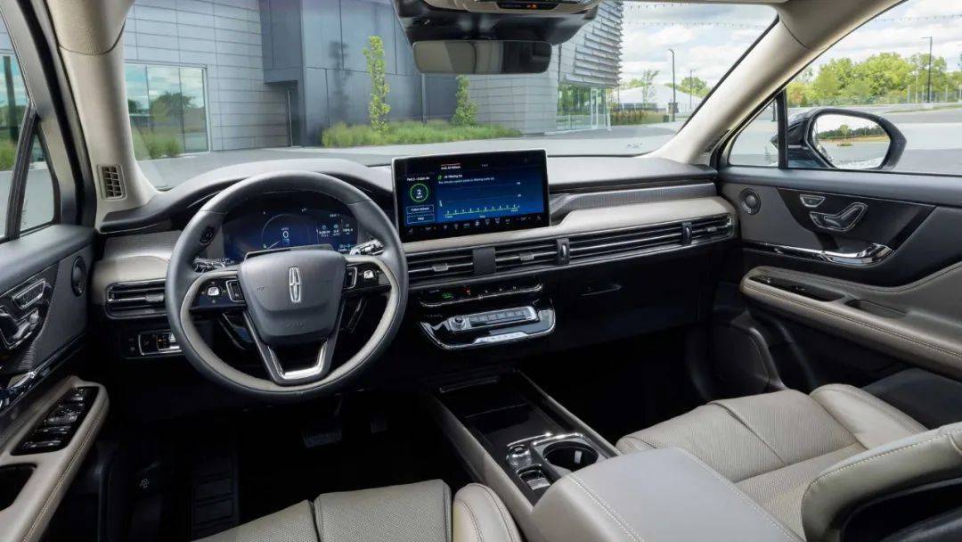 内饰方面,乍一看似乎依然是地平线风格设计,贯穿式出风口加13.2英寸中控大屏显得非常规矩。往下看就会发现,新车内饰的空调和多媒体控制面板尺寸明显缩小了,大部分物理按键得以保留,盲操依然无压力。更精简的面板设计把大量空间还给了中央扶手区域,营造出更强的开阔感,林肯标志性的左右分段式腿托调节也毫不意外的出现在了新车上。