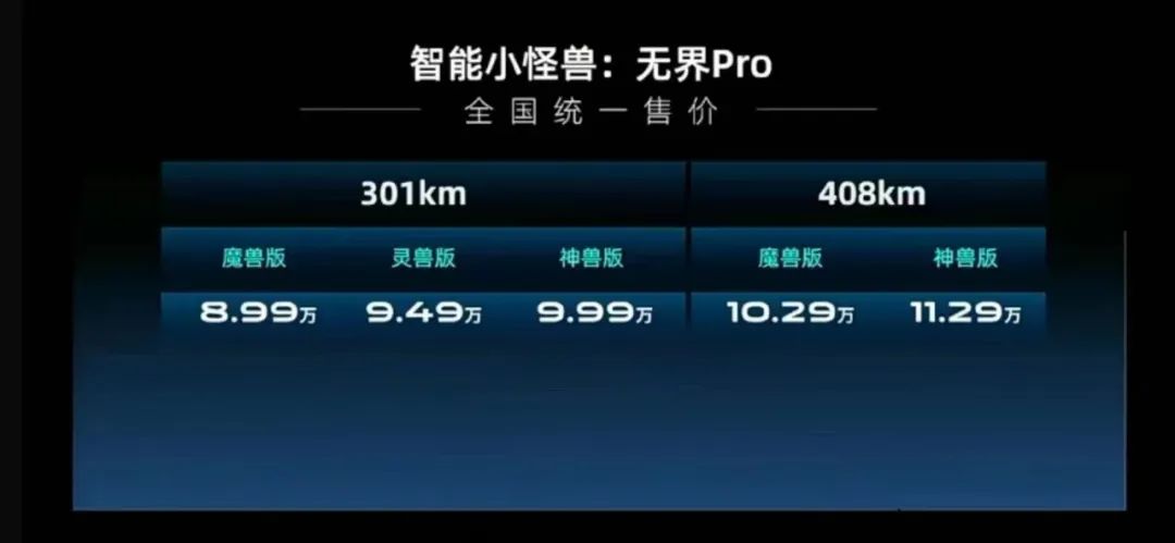 今日(11月23日),奇瑞无界Pro正式迎来了上市,共推出5款车型,售价区间为8.99-11.29万元。作为奇瑞iCar生态旗下全新旗舰车型,无界Pro在雷霆机甲造型、诸多领先智能科技、超400公里续航等优势加持下,实力破局A00级新能源市场,下面,就跟圈哥一起来看看新车都有哪些亮点吧。