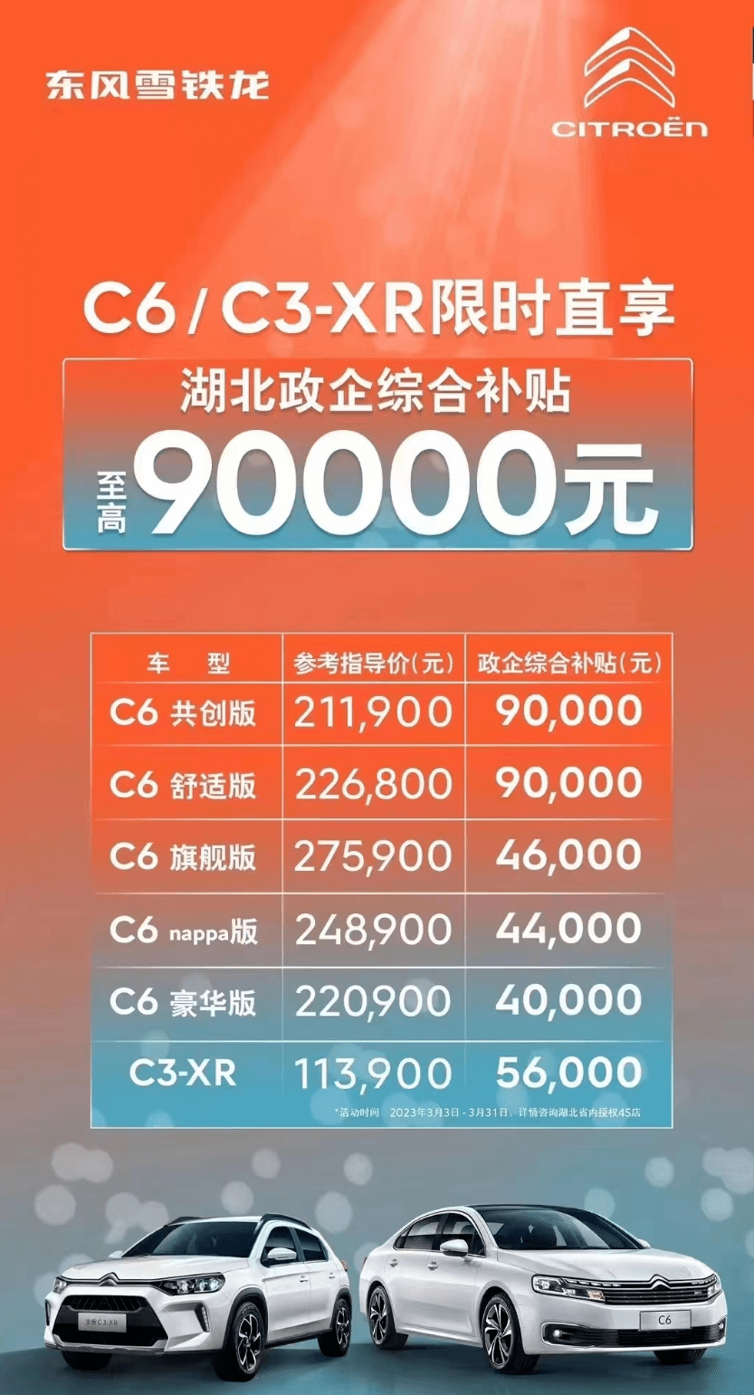 整件事情还得从雪铁龙C6的9万元巨额补贴开始说起,这张图可谓是“万恶之源”。原本21万元左右的B+级轿车现在只卖12万元,网友们纷纷惊呼——21万的雪铁龙C6老气横秋,12万的雪铁龙C6成熟稳重,雪铁龙武汉地区的终端也瞬间一车难求。大家纷纷感叹,没有卖不出去的车,只有卖不出去的价格。