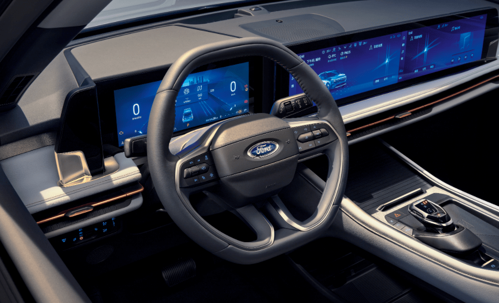 来到车内,大家会发现福特似乎从新一代蒙迪欧以及EVOS开始,已经懂得如何打造一套真正符合中国消费者喜好的内饰了。而令人意外的是,锐界L并未完全照搬新一代蒙迪欧的内饰设计,贯穿式大屏除了保持了同级领先的科技感外,它的仪表台还向前推了5厘米左右,使驾驶者获得了更好的视野,这对坐姿偏高的SUV来说非常关键。