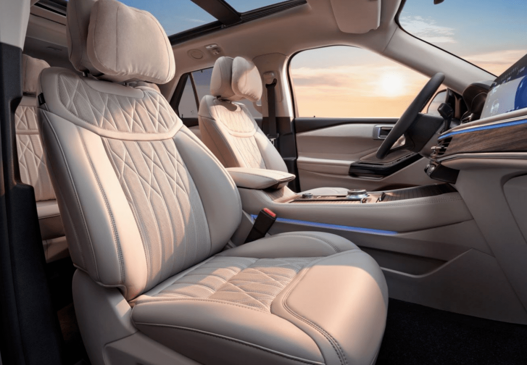 如果说配色是“像”豪华品牌,那么这套Savannah全粒面半苯胺真皮座椅就可以算是实打实的顶级豪华品牌同款了。同级合资车一般采用普通真皮,讲究一点的会在高配车型上使用或提供NAPPA皮作为选装,而半苯胺真皮,想都别想。同时,福特还加入了两个似乎是奔驰S级同款头枕,如果只看图,绝对有很多人会误认为这是奔驰S级的座椅。