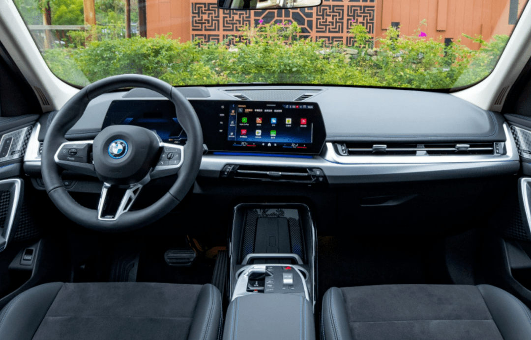 车内部分,宝马iX1的设计风格简约而不简单,且能看到大哥宝马iX的影子。新车采用环保材质,搭配细纹皮革饰板,彰显出豪华与品质。曲面双联屏和宝马iX同款中岛设计尽显高端,与新势力们大都采用的贯穿式出风口等极简设计相比,更不容易审美疲劳。