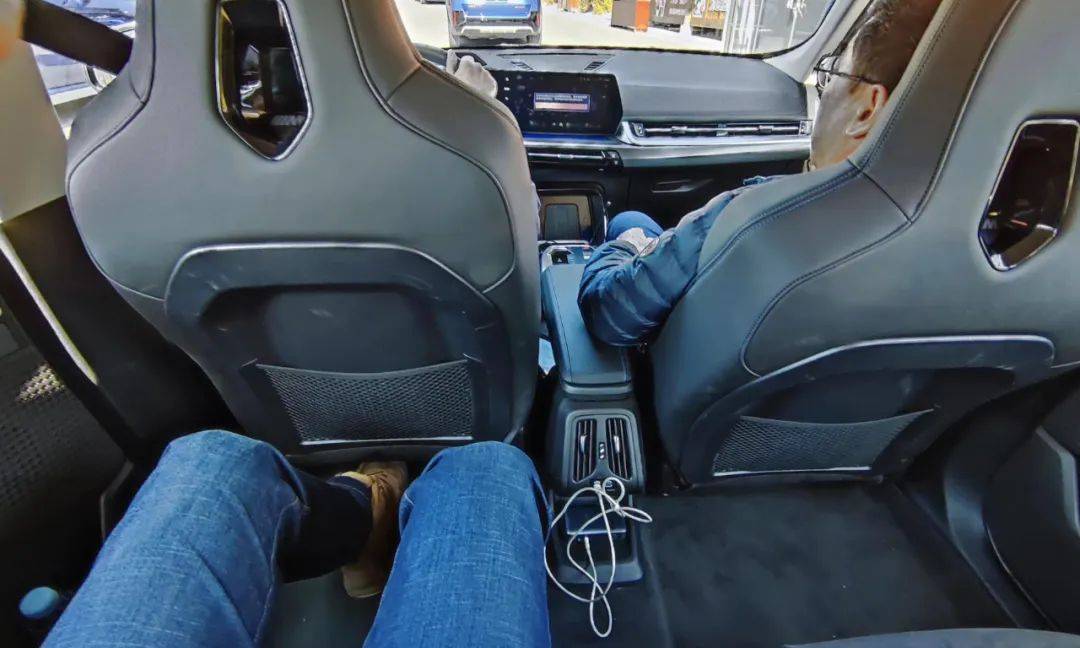 至于空间实用度方面,因为其轴距达到了2802mm,后排空间表现自然也相当夸张。前排驾驶者身高为175cm,圈哥(185cm,95kg)坐在后排仍有两拳半左右腿部空间,并且坐垫够长、够舒适,主观乘坐体验优于宝马iX3,仅次于长轴宝马X5。坐在这样的后排游千户苗寨,绝对是越级的享受。