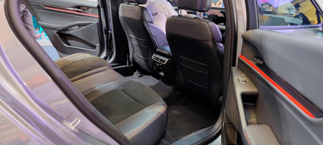 值得一提的是,新车并没有因为混动的身份而增加太多所谓的“电动化”蓝色车标之类的细节,总体与燃油版车型几乎没有差异,只有尾标和低风阻轮毂能辨其身份。而且大家需要注意,新车的车长超过了4.9米,轴距更是达到了2945mm,某种程度上已经算中大型轿车了。所以它的物理尺寸和出色造型所带来的气场其实是明显超过了同级合资轿车的。