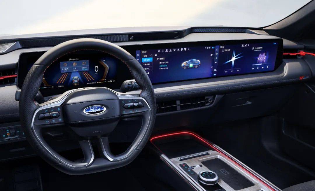内饰方面,福特蒙迪欧大马力E-混动版同样出色。车内采用了大量软性材料,充满了科技感、豪华感和舒适感。12.3英寸全液晶仪表和27英寸4K触摸屏构成的1.1米大联屏科技感十足,搭配多功能方向盘和触屏操作,让驾驶者能够更加便捷地掌控车辆各项功能。此外,车内还配备了氛围灯和全景天窗,为驾驶者提供了更加舒适的驾驶环境。