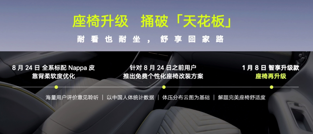 当然这种升级并不会“背刺”老车主,因为阿维塔也为老车主们提供了一套完整的免费个性化座椅改装方案。而免费帮老车主升级车辆硬件的事,阿维塔已经不是第一次干了,以后也会持续干下去。
