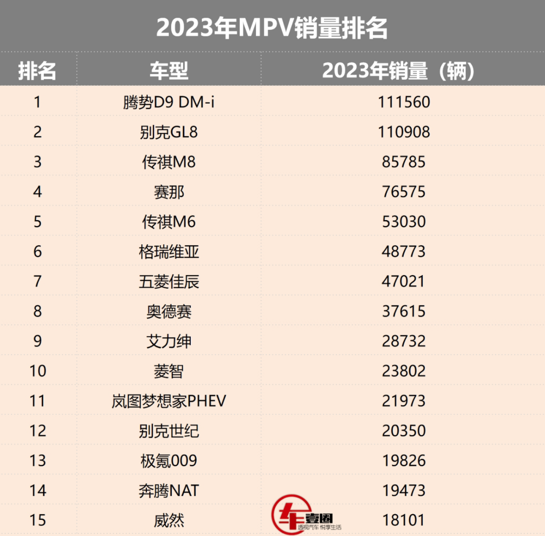 当然,MPV市场除了涨势迅猛,畅销车的排名也发生了巨大的变化,腾势D9 DM-i一举拔得头筹,而传统豪强别克GL8仅位居第二。2023年度MPV销量榜还有哪些看点呢?让我们先睹为快吧。
