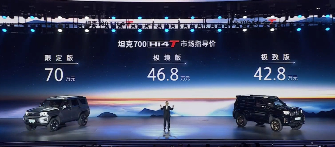 2月26日,坦克700 Hi4-T正式上市,售价42.8-46.8万元,此外限定版指导价为70万元。新车拥有线条刚劲有力,融合了经典与现代设计元素,展现出无与伦比的霸气。此前坦克700 Hi4-T发售的70辆限量版车型,仅55秒便售罄,可见该车热度之高,产品力之强。